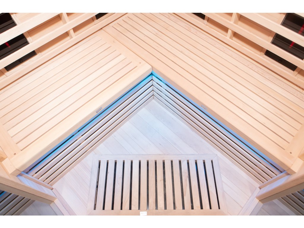 Svetelná terapia je umiestnená v hornom paneli na strope infrasauny. LED svetlá ponúkajú 7 farebných režimov, ktorých striedanie možné nastaviť automaticky alebo manuálne prepínať. Pokrývajú celú plochu stropu infrasauny a verne tak imitujú nočné nebo pokryté žiarivými hviezdami.