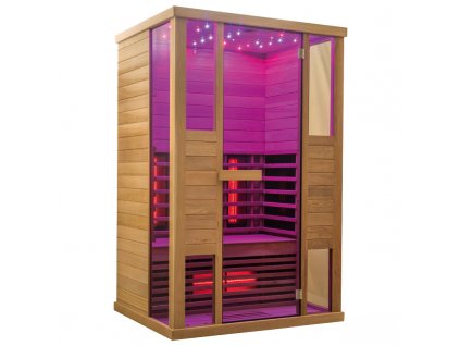 Svetelná terapia je umiestnená v hornom paneli na strope infrasauny. LED svetlá ponúkajú 7 farebných režimov, ktorých striedanie možné nastaviť automaticky alebo manuálne prepínať.